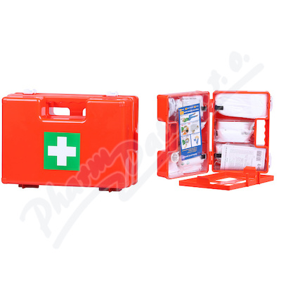 Lékárnička první pomoci v odnímatelném plastovém kufru pro 10 osob, vybaveno zdravotnickým materiálem bez léčiv. Obsahuje základní vybavení pro poskytnutí první pomoci do příjezdu lékaře.