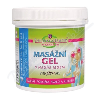Masážní gel SERPENSDERM s hadím jedem. Hadí jed napomáhá uvolnit svalovou tenzi, zeslabuje svalové kontrakce a má silné relaxační a regenerační účinky.