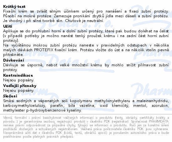 Fixační krém se zvlášť silným účinkem určený pro nanášení a fixaci zubní protézy. Působí na mokré protéze. Zamezuje pronikání zbytků jídla mezi dáseň a zubní protézu. Je vhodný i při silné tvorbě slin. Chuťově je neutrální.
