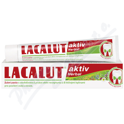 LACALUT aktiv herbal zubní pasta s 8 léčivými bylinami obsahuje osvědčené složení s laktátem hlinitým a fluoridem hlinitým. Citelně vypíná a zpevňuje dásně. Určená speciálně k prevenci parodontózy a k ochraně před krvácením dásní.