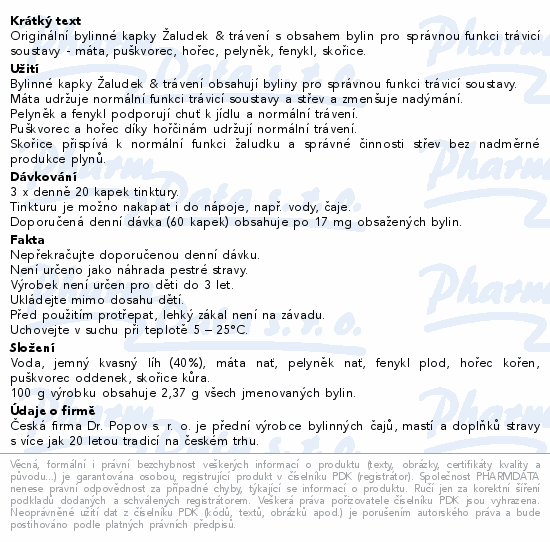 Originální bylinné kapky Žaludek & trávení s obsahem bylin pro správnou funkci trávicí soustavy - máta, puškvorec, hořec, pelyněk, fenykl, skořice.