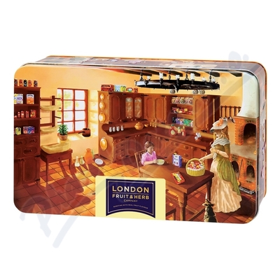 Dárková plechová dóza "KUCHYNĚ" s čajem London Fruit & Herb - 60 porcí. Dóza obsahuje 3 různé příchutě čajů po 20 porcích, příchutě čajů dle aktuální nabídky. (Ovocné a ovocno-bylinné čaje). Bez přídavku cukru, bez umělých barviv a konzervačních látek.