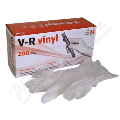 Jednorázové nesterilní vyšetřovací vinylové rukavice bez pudru, pravolevé, AQL 1,5. Balené v krabičce po 200 kusech.