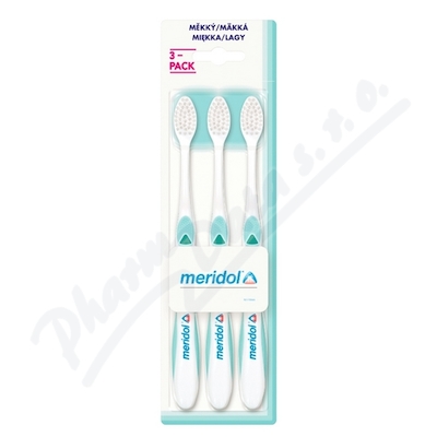 Zubní kartáček Meridol má kónická vlákna s extra jemnými konci, která chrání dásně, přičemž důkladně čistí zubní povrchy, zejména okraje dásní.