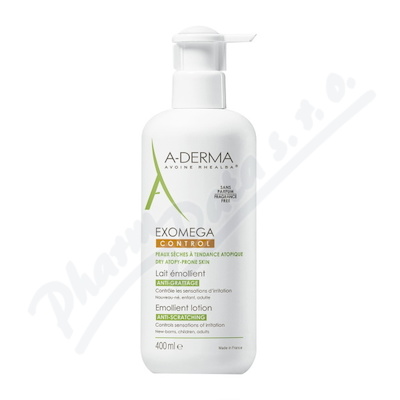 A-DERMA Exomega CONTROL Emolienční mléko 400ml. Na suchou kůži se sklonem k atopii. Bez parfemace. pro novorozence, děti, dospělé.