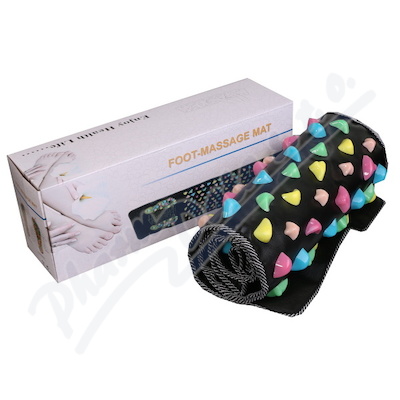 Masážní akupresurní podložka s umělými kamínky účinně poslouží a nahradí přirozenou a prospěšnou chůzi po kamínkách v přírodě nebo po oblázcích u moře. Masáž stimuluje reflexní oblast chodidel, podporuje cirkulaci krve a tím urychluje látkovou výměnu.