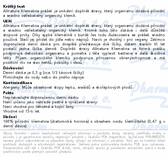 Allnature Křemelina prášek je unikátní doplněk stravy, který organismu dodává přírodní a snadno vstřebatelný organický křemík.