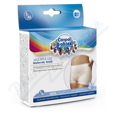 Elastické, bezešvé (síťované) kalhotky jsou vyrobeny z prodyšného nylonu. Jsou určeny matkám v období po porodu. V balení 2 kusy. Dodávají se ve dvou velikostech: S/M, L/XL.