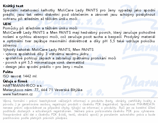 Speciální natahovací kalhotky MoliCare Lady PANTS pro ženy vypadají jako spodní prádlo; jsou tak velmi diskrétní pod oblečením a zároveň jsou schopny poskytnout ochranu při středním až těžkém úniku moči.