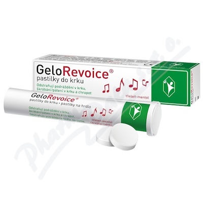 GeloRevoice pastilky do krku chrání sliznici úst a krku. Používají se k odstranění příznaků, jako jsou chrapot, škrábání/pálení v krku a suchá sliznice, které způsobují bolest v krku nebo dráždivý, suchý kašel.
