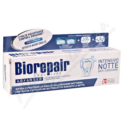 Inovativní formule Biorepair Intensive Night Anti-Erosion účinně bojuje proti demineralizaci zubní skloviny během noci.