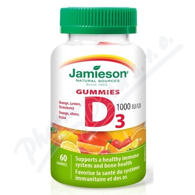 Vitamín D3 1000 IU v želatinových pastilkách s lahodnou ovocnou příchutí přispívá ke správnému vstřebávání a využití vápníku a fosforu, ke zdravému růstu a udržení zdravých kostí, svalů a zubů a ke správné činnosti imunitního systému.