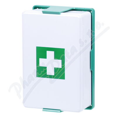 Plastová lékárnička pro až 5 osob je ideální pro domácnosti, kanceláře, dílny a školy. Obsahuje zdravotnické potřeby a je snadno rozpoznatelná díky bílému kříži na zeleném podkladu. Vybavena je i držákem na zeď.