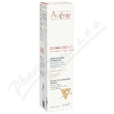 DermAbsolu péče o oční okolí obsahující tři dermatologicky aktivní látky: bakuchiol 1 %, glykoleol 1 % a vanilkové polyfenoly pomáhají opětovně zpevnit, vyhlazovat a intenzivně vyživovat citlivou pleť, která postrádá komfort.