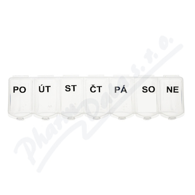 Dávkovač léků box 7 dní je rozdělen na 7 částí nebo pomocí zkratek názvů dnů v týdnu. Každý den se otevírá samostatně pomocí víčka, zatímco ostatní dny zůstávají pečlivě uzavřeny.