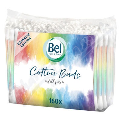 Bel Face & Body Rainbow vatové tyčinky 160ks spojují jemnost 100 % bavlněné hlavičky s pevnou, ale pružnou papírovou tyčinkou – nyní v hravých barvách duhy!