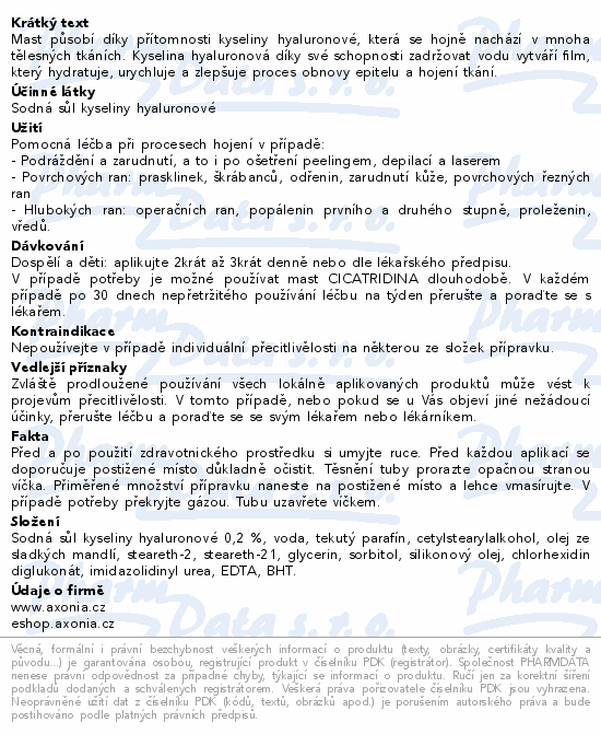 Mast působí díky přítomnosti kyseliny hyaluronové, která se hojně nachází v mnoha tělesných tkáních. Kyselina hyaluronová díky své schopnosti zadržovat vodu vytváří film, který hydratuje, urychluje a zlepšuje proces obnovy epitelu a hojení tkání.