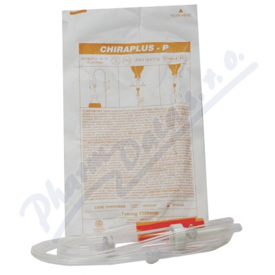 Chiraplus P infúzní souprava, slouží k podávání infúzních roztoků nebo injekčních roztoků z lahví nebo plastových vaků působením gravitrace do žíly pacienta.