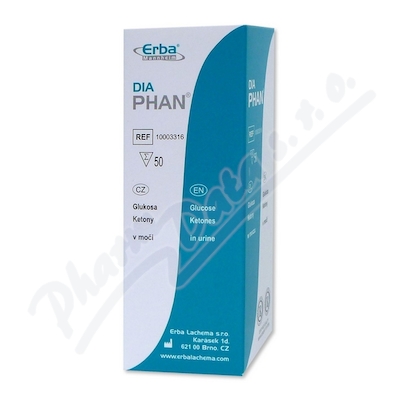 Zdravotnický prostředek, in vitro diagnostika, dignostické proužky na analýzu moči. DiaPhan jsou diagnostické proužky určené k vizuální detekci glukózy a ketolátek v moči.
