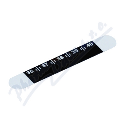 Stačí přiložit na čisté suché čelo za světlé okraje, během 15-20 sekund se zbarví zeleně pole v úrovni naměřené hodnoty tělesné teploty.