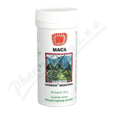 Maca. Doplněk stravy. Tradiční bylinný produkt. 60 kapslí, 22 g. Udržuje fyzické a duševní síly. Plodnost a sexuální aktivita. Při menopauze.