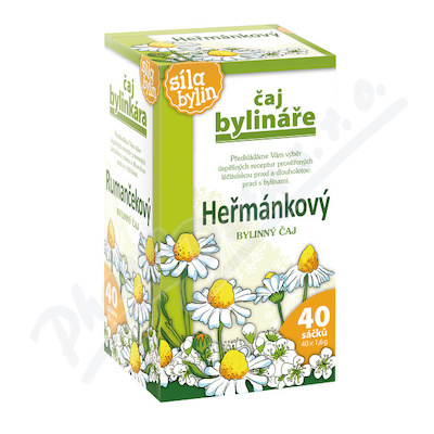 Čaj Bylináře Heřmánkový je bylinný čaj porcovaný v nálevových sáčcích. Heřmánek je tradiční bylinka s mnohostranným uplatněním. Lze jej užívat vnitřně i zevně - k obkladům a koupelím.